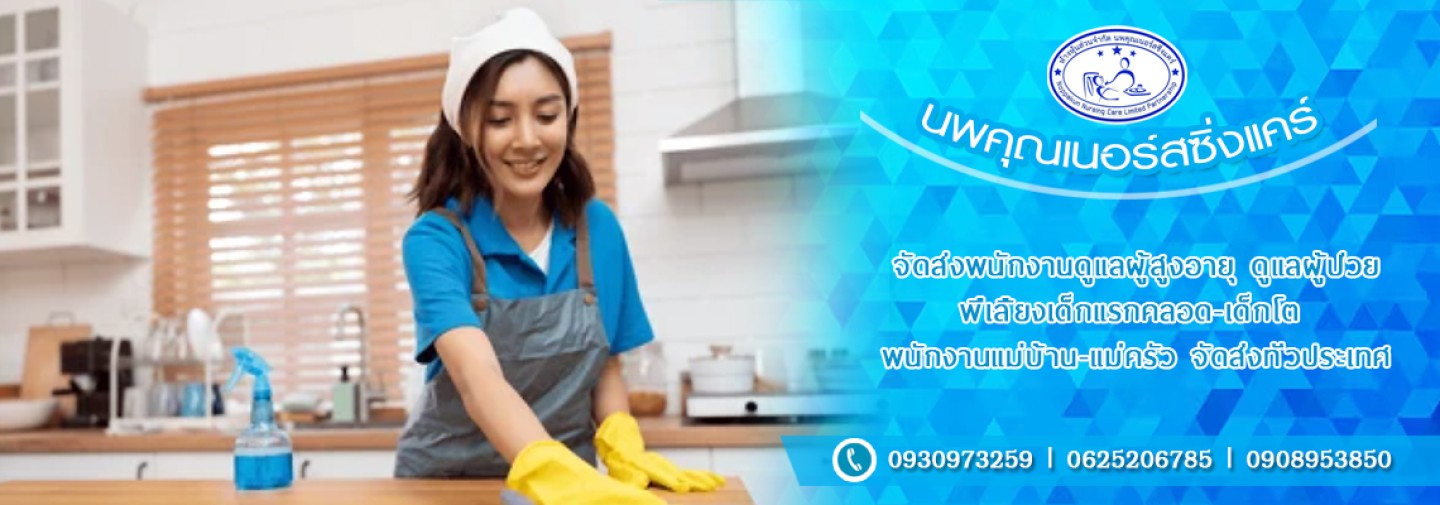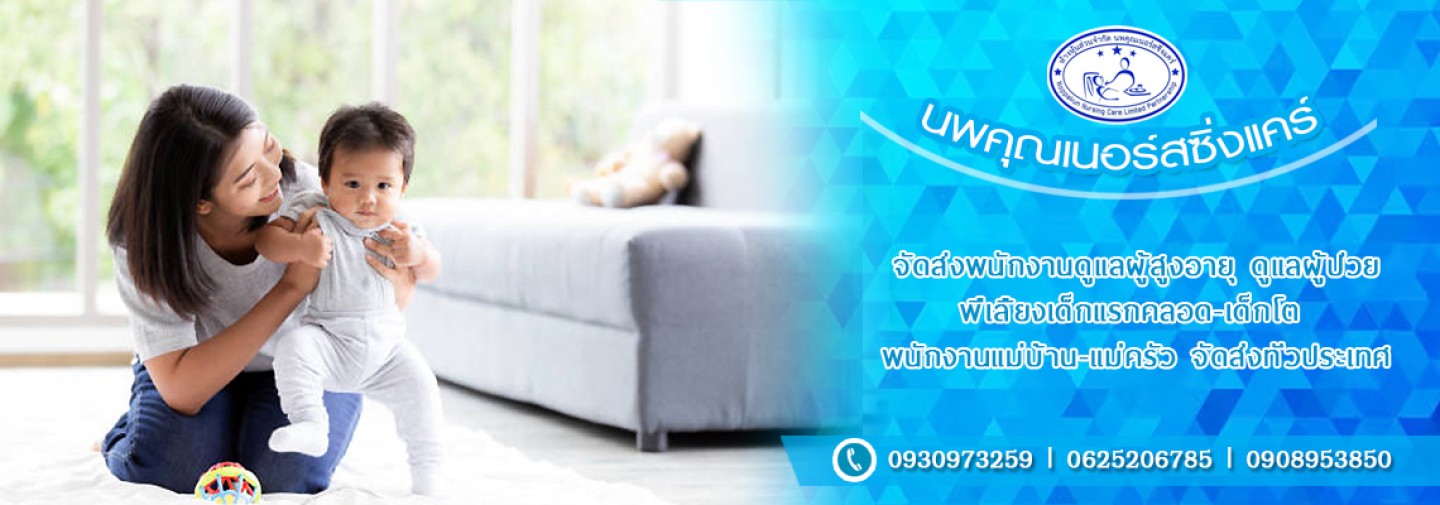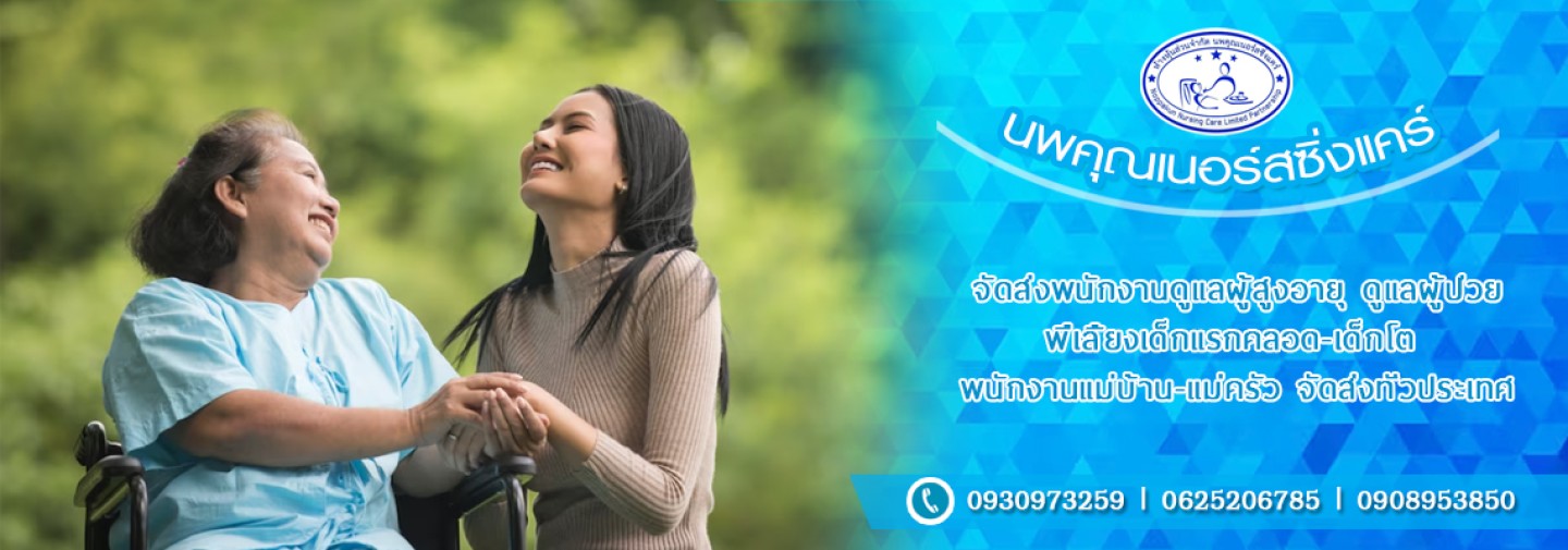 นพคุณเนอร์สซิ่งแคร์ บริการจัดส่งพนักงานดูแลเฝ้าไข้ผู้ป่วย ดูแลผู้สูงอายุ พี่เลี้ยงเด็ก แม่บ้าน-แม่ครัว ประจำบ้านและโรงพยาบาล ทั่วประเทศ เราให้บริการจัดหาผู้ช่วยดูแลคนที่คุณรัก ทั้งแบบประจำและแบบไป-กลับ รายวัน รายเดือน ราคามิตรภาพ